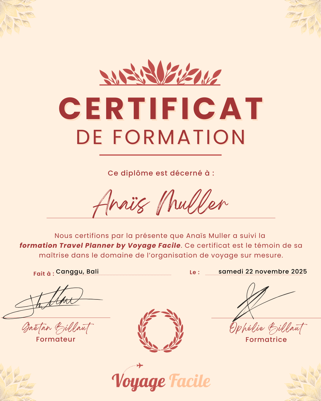 Pour aller plus loin dans cette exigence, j’ai également choisi de me former et d’obtenir ma certification de travel planner.